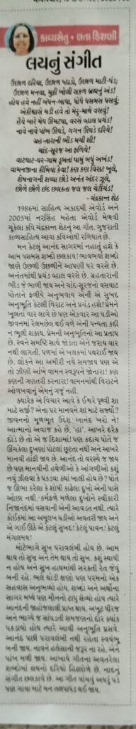 લયનું સંગીત ~ લતા હિરાણી * કાવ્યસેતુ 452 > દિવ્ય ભાસ્કર > 12.9.2023