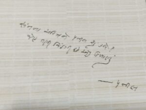 કવિ મગનભાઈ પટેલ ‘પતીલ’ ના હસ્તાક્ષરમાં પંક્તિ 2 Comments / કાવ્ય, સંચય / 08/08/2024 સૌજન્ય : બૃહદ ગુજરાતી કાવ્યસમૃદ્ધિ – સં. સુરેશ દલાલ Like this:Like Loading... Related 2 thoughts on “કવિ મગનભાઈ પટેલ ‘પતીલ’ ના હસ્તાક્ષરમાં પંક્તિ” Minal Oza 08/08/2024 at 12:36 pm સંતના જીવનને કળવું મુશ્કેલ !! માર્મિક વાત છે. Loading... Reply Leave a Comment Cancel ReplyYour email address will not be published. Required fields are marked *Type here.. Name Email Website Save my name, email, and website in this browser for the next time I comment. Notify me of follow-up comments by email. Notify me of new posts by email. Δ