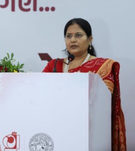 એ લાલ રંગની સાડીમાં સજ્જ બહાર આવી.