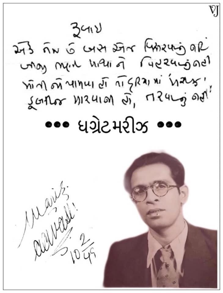 મરીઝના હસ્તાક્ષર (ફોટો) 4 Comments / કાવ્ય, સંચય / 09/11/2024 Like this:Like Loading... Related 4 thoughts on “મરીઝના હસ્તાક્ષર (ફોટો)” સાજ મેવાડા 09/11/2024 at 5:06 pm વંદન, સરસ રુબાઈ Loading... Reply Minal Oza 10/11/2024 at 11:59 am મરીઝ નો અંદાજ જુદો જ હોય છે. Loading... Reply Chavada Kalpesh 12/11/2024 at 1:00 am વાહ , તરવાનું નહીં Loading... Reply Leave a Comment Cancel ReplyYour email address will not be published. Required fields are marked *Type here.. Name Email Website Save my name, email, and website in this browser for the next time I comment. Notify me of follow-up comments by email. Notify me of new posts by email. Δ