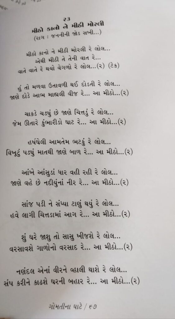 જયશ્રીબા પી. ગોહિલ ~ ગોમતીના ઘાટે 4 Comments / કાવ્ય / 22/11/2024 🥀 🥀 ‘ગોમતીના ઘાટે’ * જયશ્રીબા પી. ગોહિલ * સ્વયં 2023 ‘કાવ્યવિશ્વ’માં આ ભજનસંગ્રહનું સ્વાગત છે. Like this:Like Loading... Related 4 thoughts on “જયશ્રીબા પી. ગોહિલ ~ ગોમતીના ઘાટે” Kirtichandra Shah 22/11/2024 at 11:47 am સ્વાગત છે Loading... Reply સાજ મેવાડા 22/11/2024 at 12:03 pm ભજન – ગીત સંગ્રહ ને આવકાર. Loading... Reply Saryu Parikh 22/11/2024 at 7:45 pm હું તો મળવા દોડી…સરસ રચના. Loading... Reply Leave a Comment Cancel ReplyYour email address will not be published. Required fields are marked *Type here.. Name Email Website Save my name, email, and website in this browser for the next time I comment. Notify me of follow-up comments by email. Notify me of new posts by email. Δ