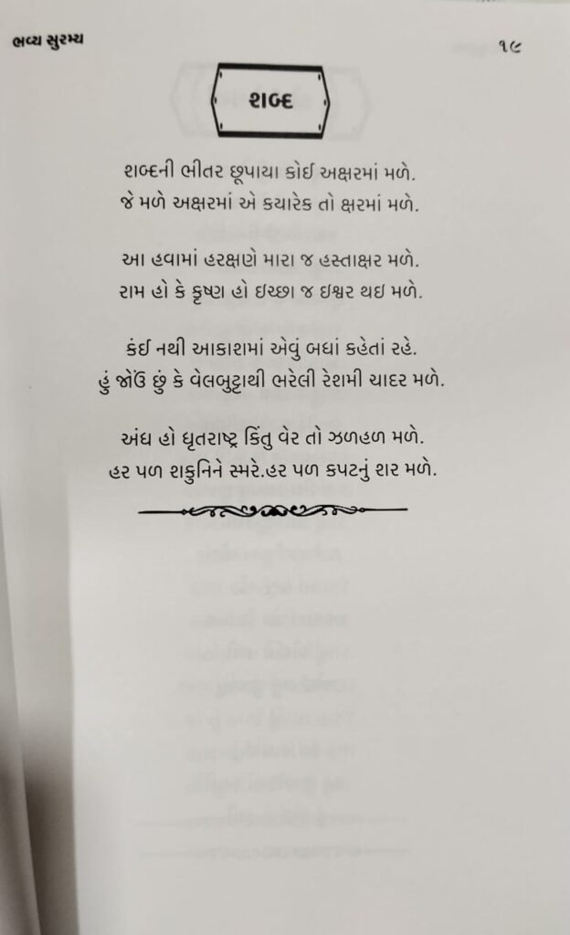 ‘ભવ્ય સુરમ્ય’ કાવ્ય સંગ્રહનું સ્વાગત છે. એમની રચનાઓને અધ્યાત્મનો રંગ ચડેલો હોય છે.નમન.