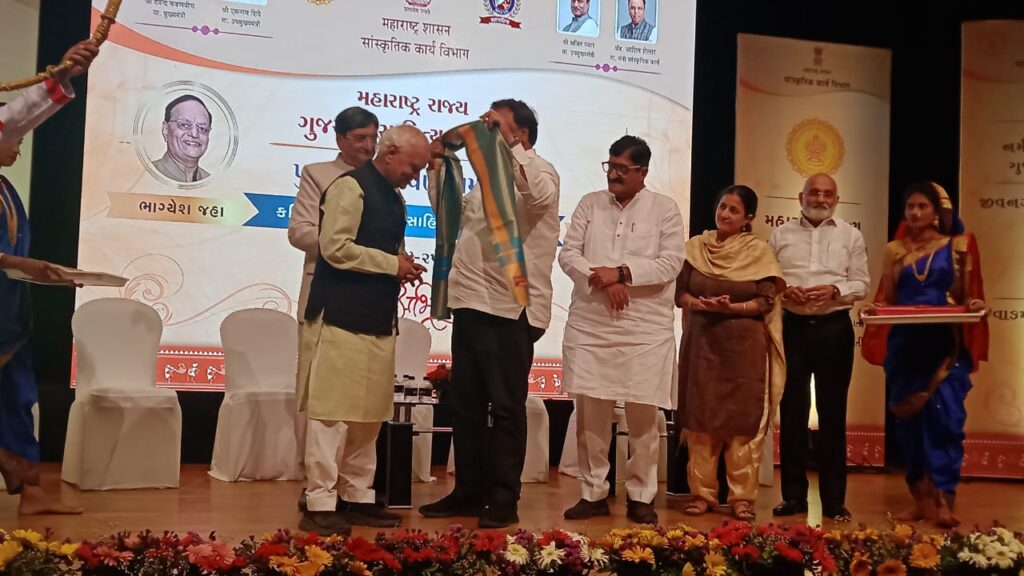 ગુજરાતી સાહિત્યમાં ડો. ભાગ્યેશ જહાને કવિ નર્મદ પારિતોષિક (રૂ. એક લાખની ધનરાશિ સહિત) અર્પણ થયેલ છે. ઉપર ફોટામાં મહારાષ્ટ્રના સાંસ્કૃતિક મંત્રીશ્રીના હસ્તે કવિ શ્રી ભાગ્યેશ જહા ‘નર્મદ ચંદ્રક’ સ્વીકારી રહ્યા છે. અભિનંદન જહાસાહેબ.