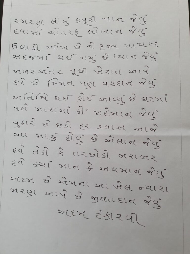 ๐เชเชตเชฟ เช เชฆเชฎ เชเชเชเชพเชฐเชตเซเชจเชพ เชนเชธเซเชคเชพเชเซเชทเชฐเชฎเชพเช๐ 2 Comments / เชเชพเชตเซเชฏ, เชธเชเชเชฏ / 27/09/2025 Like this:Like Loading... Related 2 thoughts on “๐เชเชตเชฟ เช เชฆเชฎ เชเชเชเชพเชฐเชตเซเชจเชพ เชนเชธเซเชคเชพเชเซเชทเชฐเชฎเชพเช๐” เชเชฌเซเชฒเชญเชพเช เชคเซเชฐเชฟเชตเซเชฆเซ 27/09/2025 at 10:39 am เชธเชฐเชธ เชเชตเชฟ เชถเซเชฐเซ เชจเชพ เชนเชธเซเชคเชพเชเซเชทเชฐ เชฎเชพ เชเชเชฒ เชเซเชฌ เชเชฎเซ Loading... Reply Minal Oza 27/09/2025 at 12:56 pm เชเชเชฒ เช เชจเซ เชนเชธเซเชคเชพเชเซเชทเชฐ เชฌเชเชจเซ เชฒเชพเชเชตเชพเชฌ Loading... Reply Leave a Comment Cancel ReplyYour email address will not be published. Required fields are marked *Type here.. Name Email Website Save my name, email, and website in this browser for the next time I comment. Notify me of follow-up comments by email. Notify me of new posts by email. Δ
