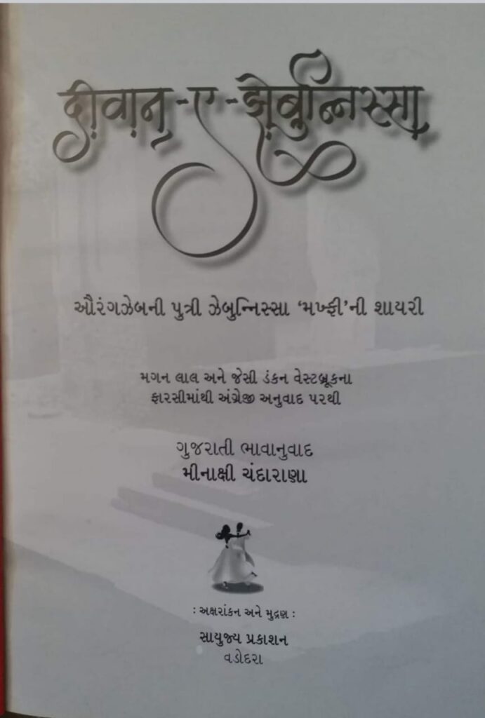 અતિશય જહેમત ઉઠાવી આપણને ‘दिवान ऐ झेब्बुन्निसा ‘ નો પરિચય કરાવવા બદલ મીનાક્ષીબેનનો ખૂબ ખૂબ આભાર.. સાયુજ્ય પ્રકાશનને પણ ધન્યવાદ.