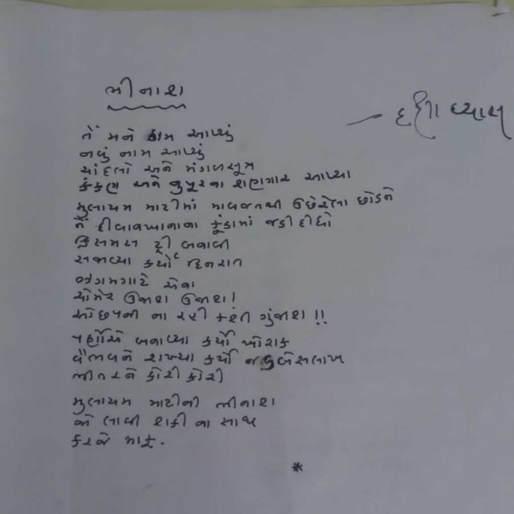 દક્ષા વ્યાસના હસ્તાક્ષરમાં કાવ્ય 4 Comments / કાવ્ય, સંચય / 18/04/2023 Like this:Like Loading... Related 4 thoughts on “દક્ષા વ્યાસના હસ્તાક્ષરમાં કાવ્ય” લલિત ત્રિવેદી 19/03/2023 at 4:38 pm सरस Loading... Reply વહીદા ડ્રાઈવર 20/04/2023 at 7:07 am ખૂબ ખૂબ આભાર સુંદર સંકલન સુંદર રચના Loading... Reply Leave a Comment Cancel ReplyYour email address will not be published. Required fields are marked *Type here.. Name Email Website Save my name, email, and website in this browser for the next time I comment. Notify me of follow-up comments by email. Notify me of new posts by email. Δ